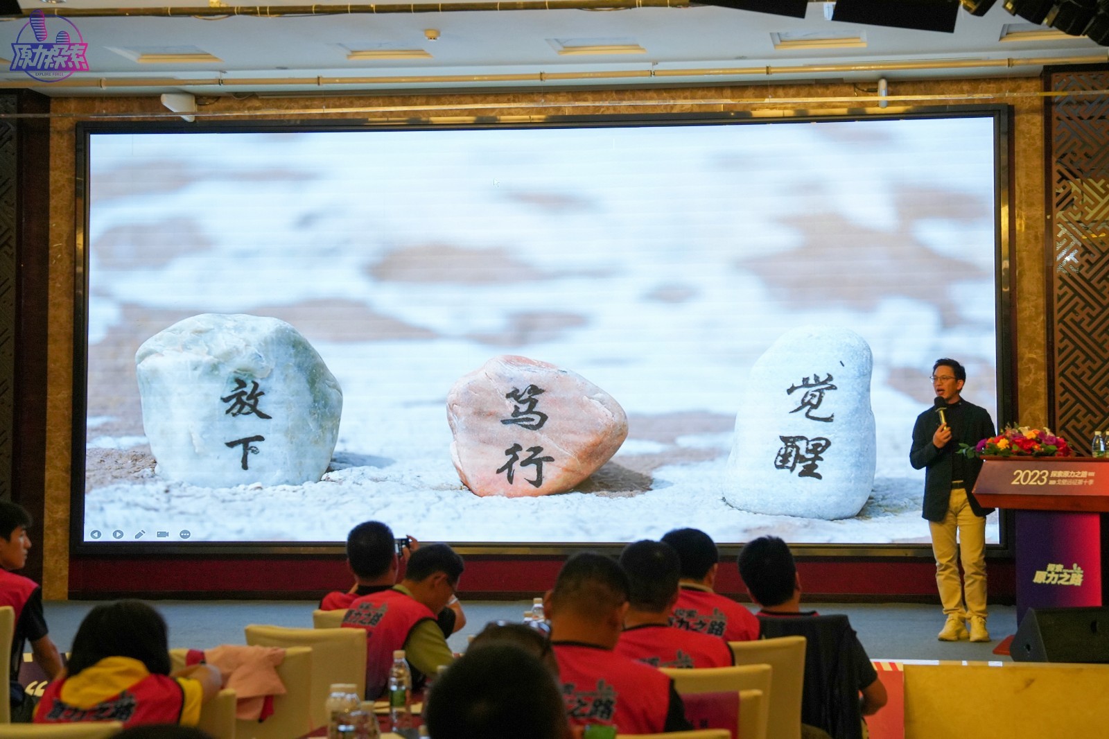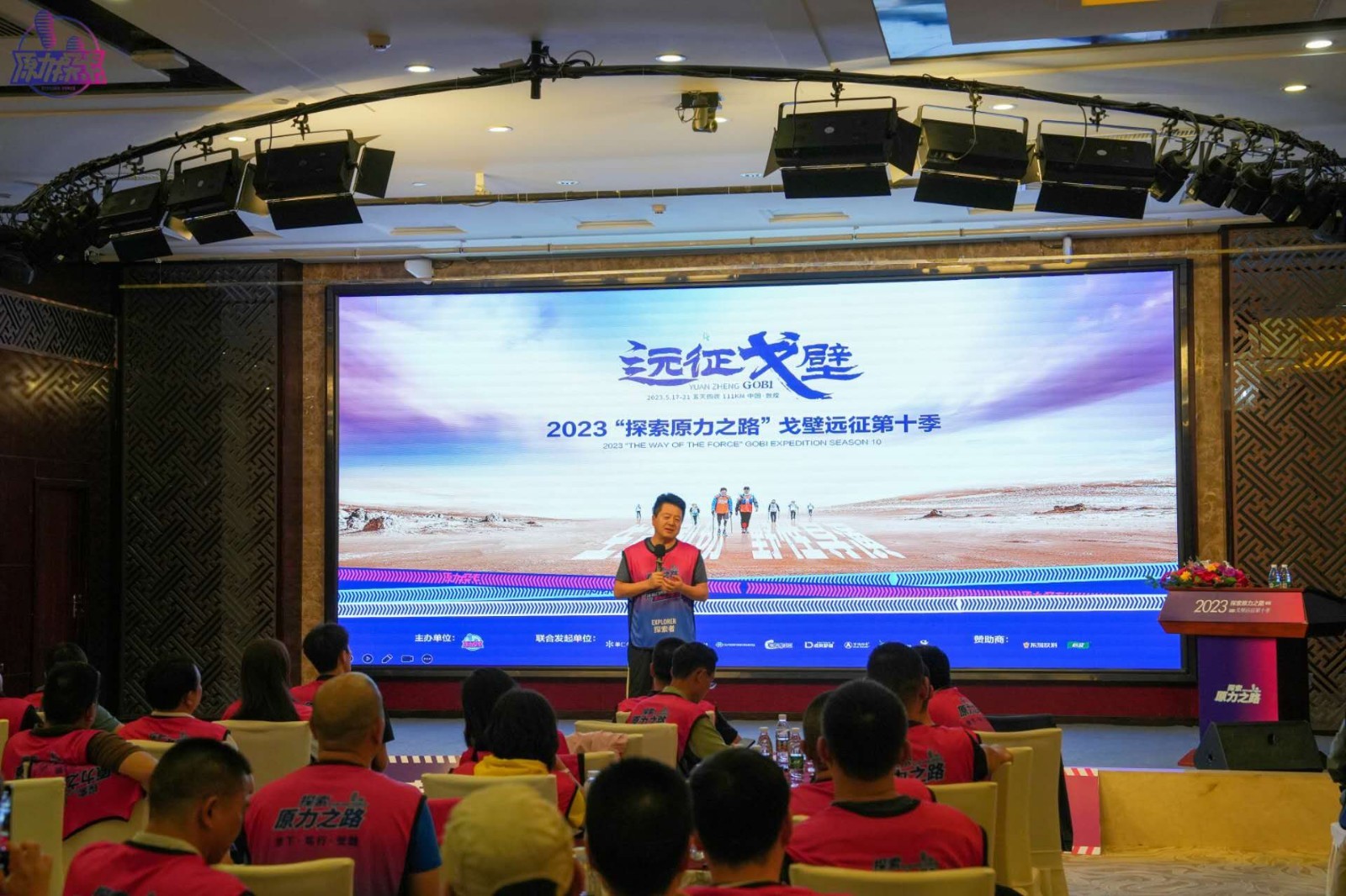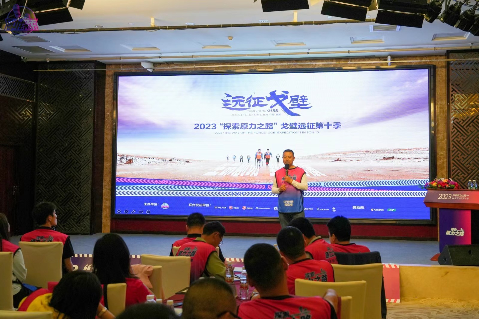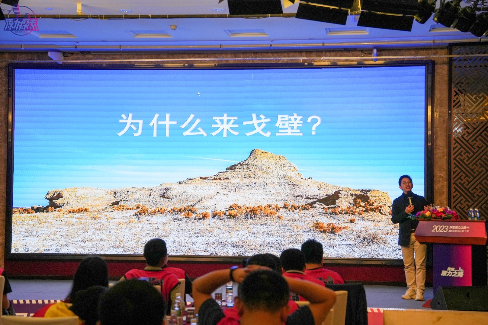 正赛开启前一天晚,来自全国各地的企业家戈友全部集结完毕。单仁牛商战队发起人张高锋、跨境电商战队发起人徐元虎和点亮梦想战队发起人赖思维为启动大会致辞,此次启动大会正式开始。深圳市原力探索户外教育有限公司创始人罗明荣为此次第十季戈壁远征分享主题课程——“放下、笃行、觉醒”。